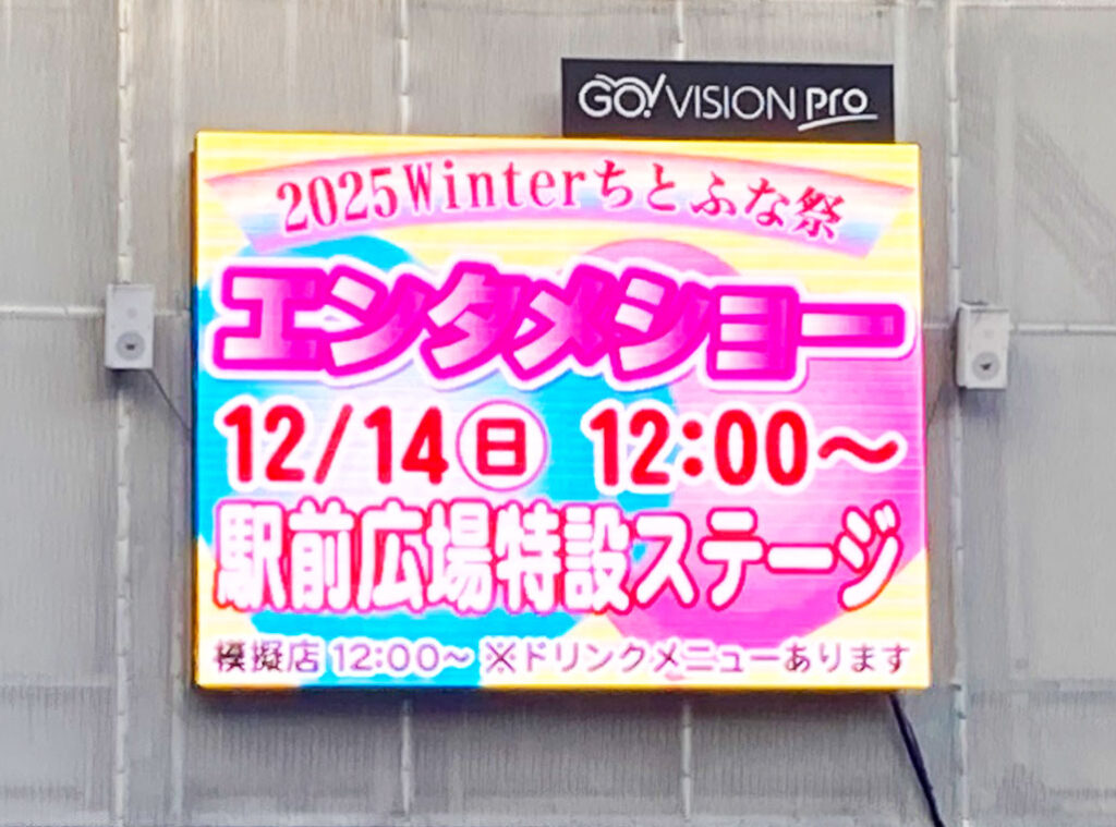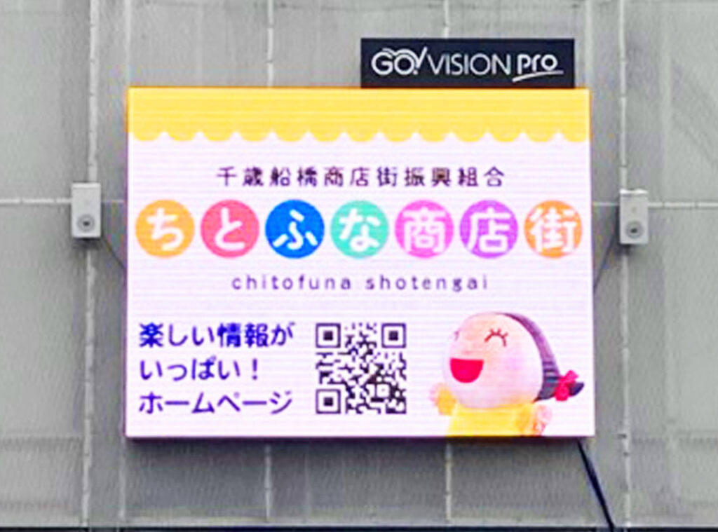 千歳船橋駅前広場(ちとふな商店街)に設置された大型DOOHによる弊社サービスGO!VISION ProのCM放映事例です。